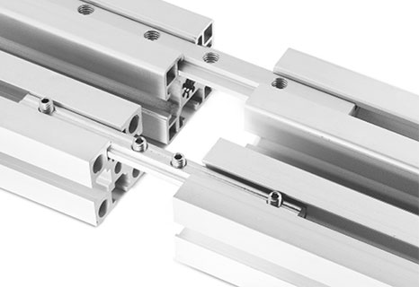 用于兩根型材之間直線加長連接,安裝時(shí)將其插入兩根型材對接觸槽坑內(nèi),然后用緊固螺絲鎖緊。