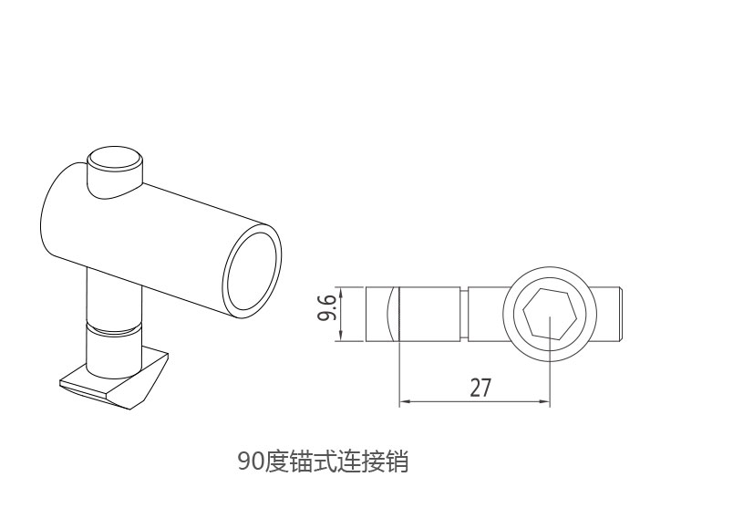 用于兩根鋁型材90度的直角連接。安裝時,它隱藏在型材內部,請根據(jù)實物加工孔位。