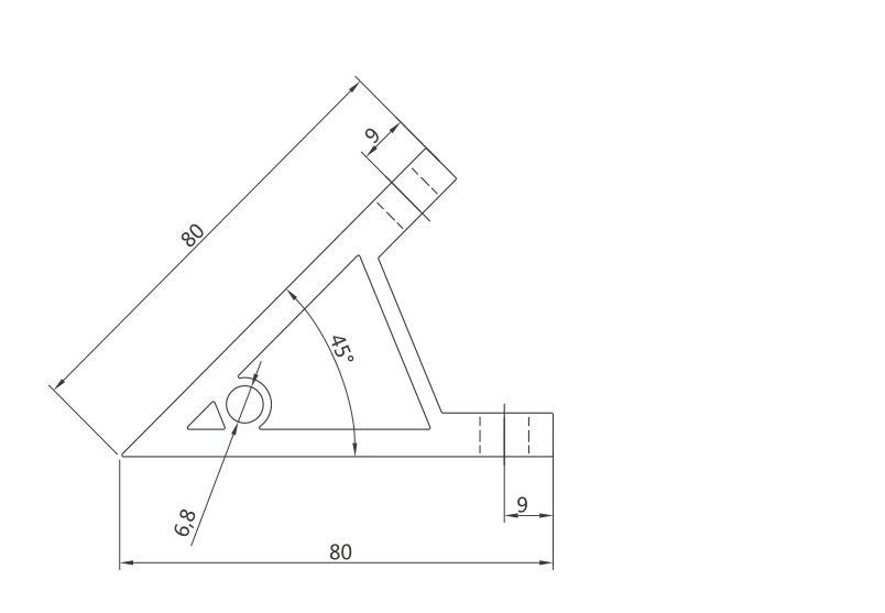 45度支架是從擠壓型材上截取料段,經(jīng)鉆孔加工而成。表面銀白陽極氧化(端面未氧化),連接強度高。靈活性和通用性能好,安裝簡單方便。主要用于型材的45度角連接。
