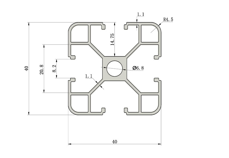 適用于應(yīng)力及強度較大的框架組合結(jié)構(gòu),它的外型采用圓角過渡,表面經(jīng)過陽極氧化處理,高雅美觀并抗腐蝕,它通常采用M8X20高強度專用螺栓加彈性扣件的內(nèi)部連接方式,堅固而又可靠,是工業(yè)框架應(yīng)用較為廣泛的型材之一。