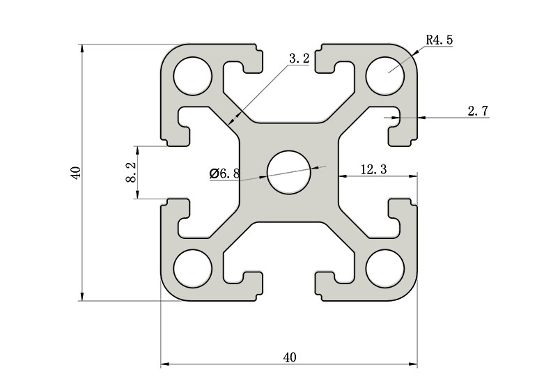 適用于應力及強度較大的框架組合結(jié)構(gòu),它的外型采用圓角過渡,表面經(jīng)過陽極氧化處理,高雅美觀并抗腐蝕,它通常采用M8X20高強度專用螺栓加彈性扣件的內(nèi)部連接方式,堅固而又可靠,是工業(yè)框架應用較為廣泛的型材之一。