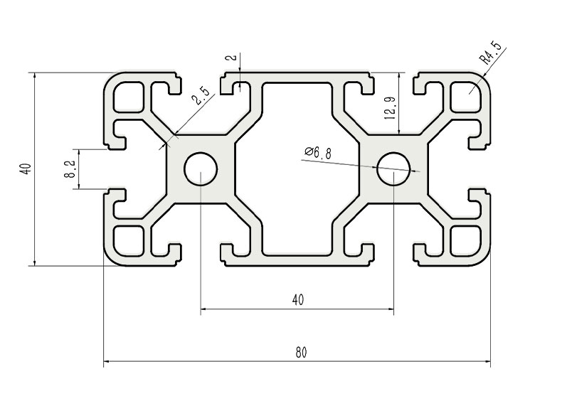 適用于應(yīng)力及強(qiáng)度較大的框架組合結(jié)構(gòu),它的外型采用圓角過(guò)渡,表面經(jīng)過(guò)陽(yáng)極氧化處理,高雅美觀并抗腐蝕,它通常采用M8X20高強(qiáng)度專(zhuān)用螺栓加彈性扣件的內(nèi)部連接方式,堅(jiān)固而又可靠,是工業(yè)框架應(yīng)用較為廣泛的型材之一。